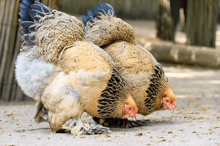 Brahma chickens are relatively large in size, and have a pea comb and a short beak. Moreover, they have a dense plumage, and have feathered legs. Generally, Brahmas are considered friendly, and calm.